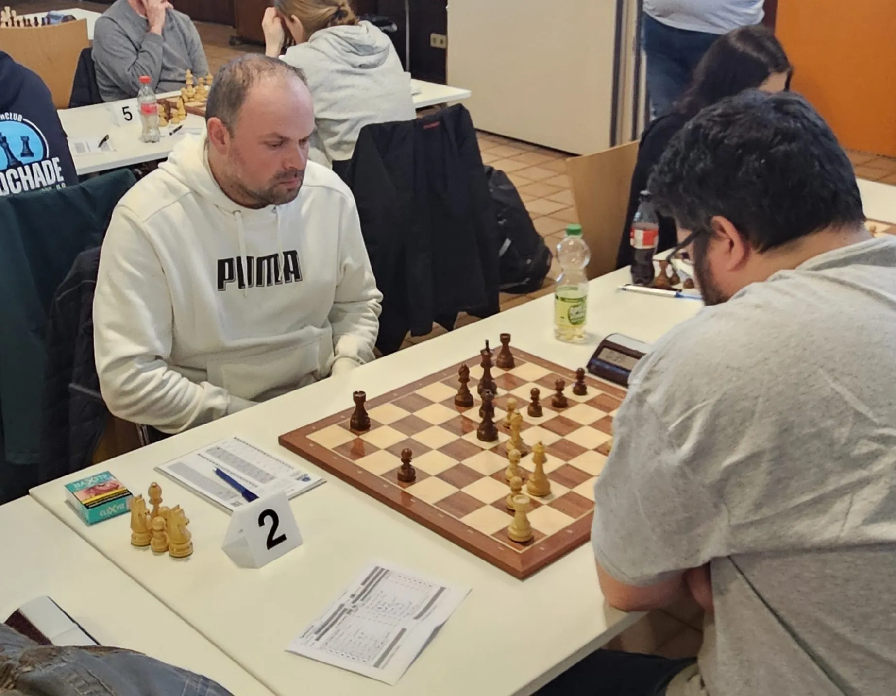 Heute waren wir in der 3. Runde der Saarlandliga bei Saarlouis I zu Gast. Nach einem spannenden Kampf konnten wir deutlich mit 5,5 zu 2,5 Punkten gewinnen. Wir stehen jetzt auf dem ersten Tabellenplatz punktgleich mit Riegelsberg I, aber haben 1,5 Brettpunkte Vorsprung. Hier einige schöne Impressionen, die Cemil zur Verfügung gestellt hat.
